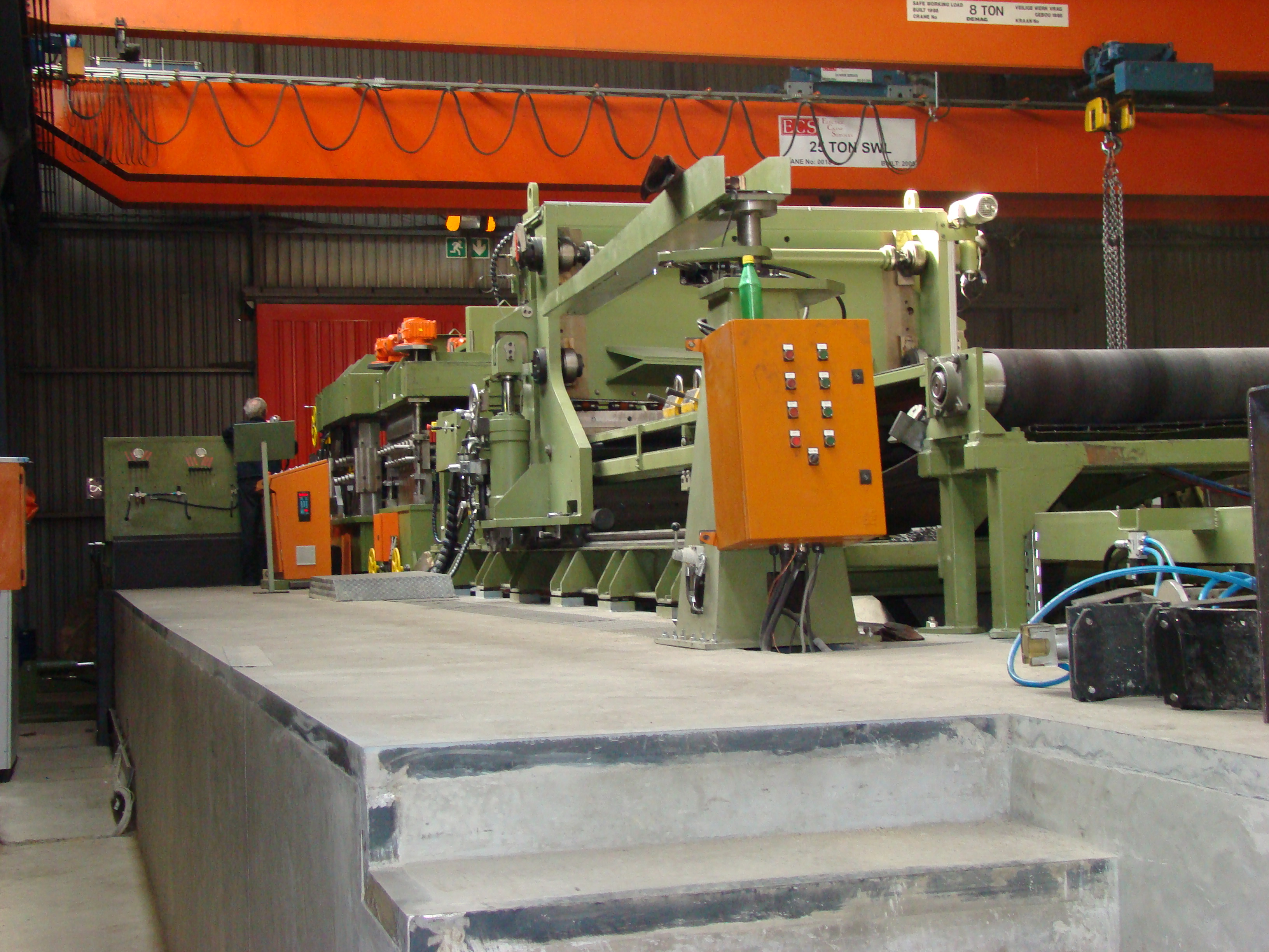 This machine can do 2000mm wide x 8mm thick mild steel sheets and it doesn’t have to stop to cut.